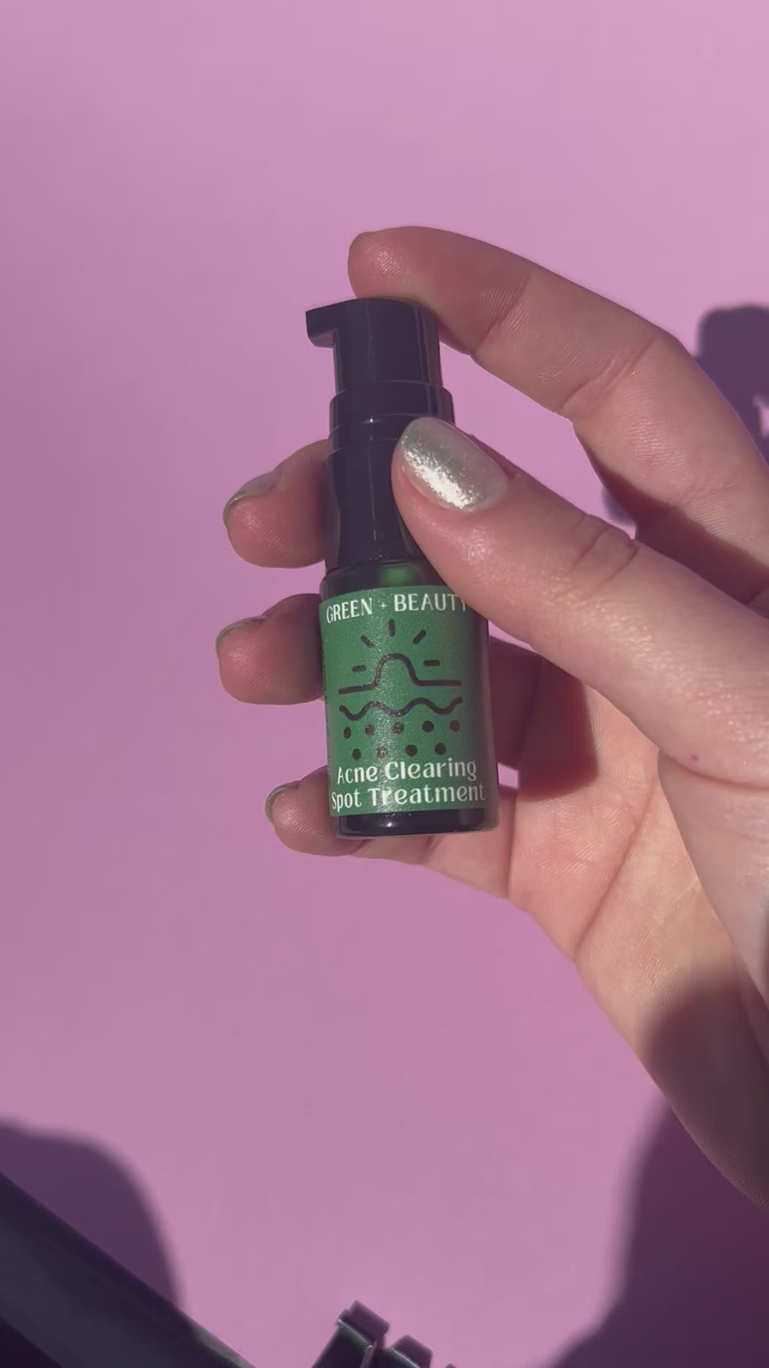 - Acne Clearing Spot Treatment:Organic Jojoba Oil, Organic Argan Oil, Organic Tamanu Oil, Clove Bud Oil, Organic Lemon Oil, Cinnamon Bark Oil, Eucalyptus Oil, Organic Rosemary Oil, Lemongrass Extract, Tea Tree Extract, Wintergreen Extract.
